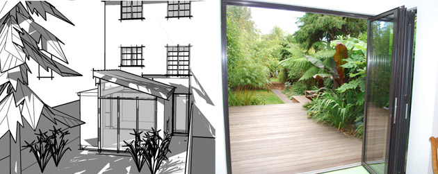 Rear extension to a 1960’s townhouse to provide a new kitchen / dining room with large folding doors to provide a seamless connection with the garden