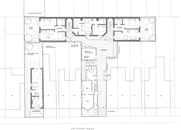Redevelopment of former builders yard premises for new urban residential accommodation grouped around entry courtyard