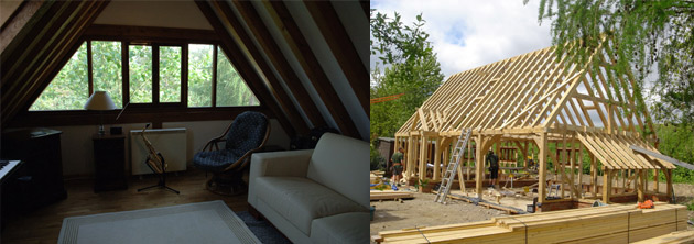 New oak framed deatched garage building with associated living accommodation plus oak framed dining and utility room extension to the existing ‘listed’ house.